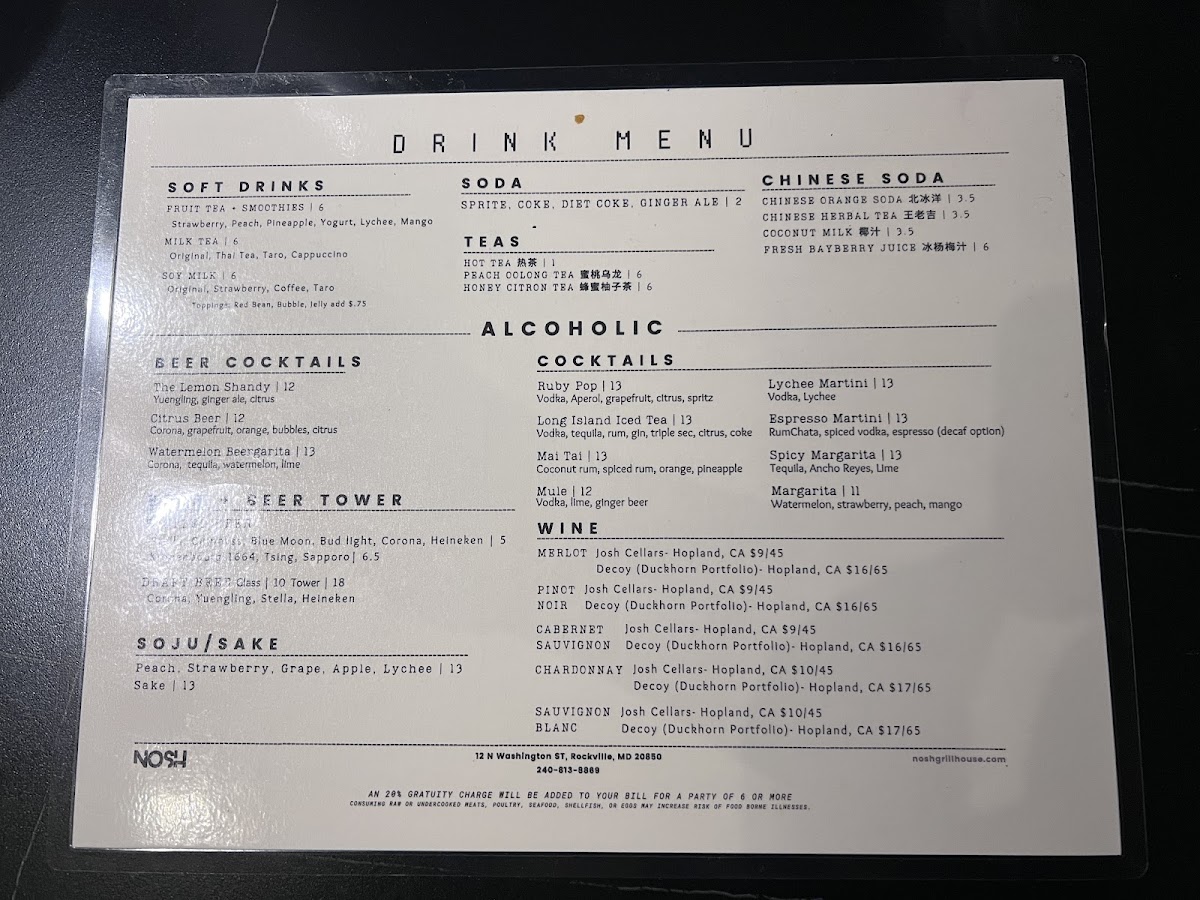 Nosh Grill House Menu